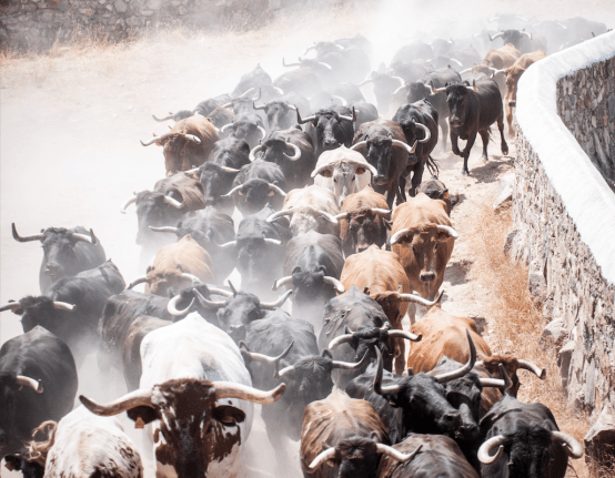 Todo empieza con los caballos toreros y sus vaqueros dominadores, con el mayoral José Antonio al mando, espoleando a las vacas madres, de considerable arboladura, negras, mulatas, bragadas o berrendas, con aspecto de toro y sus hijos becerros, con la bravura por descubrir, por la ancha manga, camino de la revisión. Corren las vacas junto a sus pupilos con tranco ágil hasta encontrar los descansaderos. Trabajo arduo el de sujetar y mandar sobre el bravo animal en el momento del destete. Encariñados los hijos con las madres que, después de la jornada, las madres seguirán siendo felices madres y los hijos, ya solos, proyectos de toros bravos.