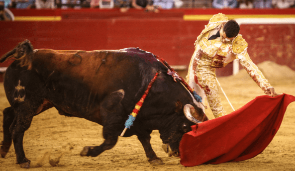 Paco Ureña en la plaza de toros de Valencia frente a un toro de Algarra en 2017.